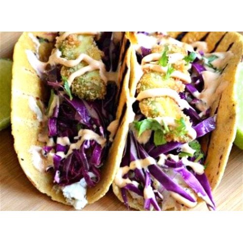 Crispy breaded Fresh avocado, refried bean, Pickle jalapeno, topped with lettuce, pico de gallo and sour cream.